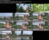 A strawberry blonde babe is walking by the water and really wants to piss. She squats on a metal bridge and pulls her panties to one side, pissing right there into the water.
